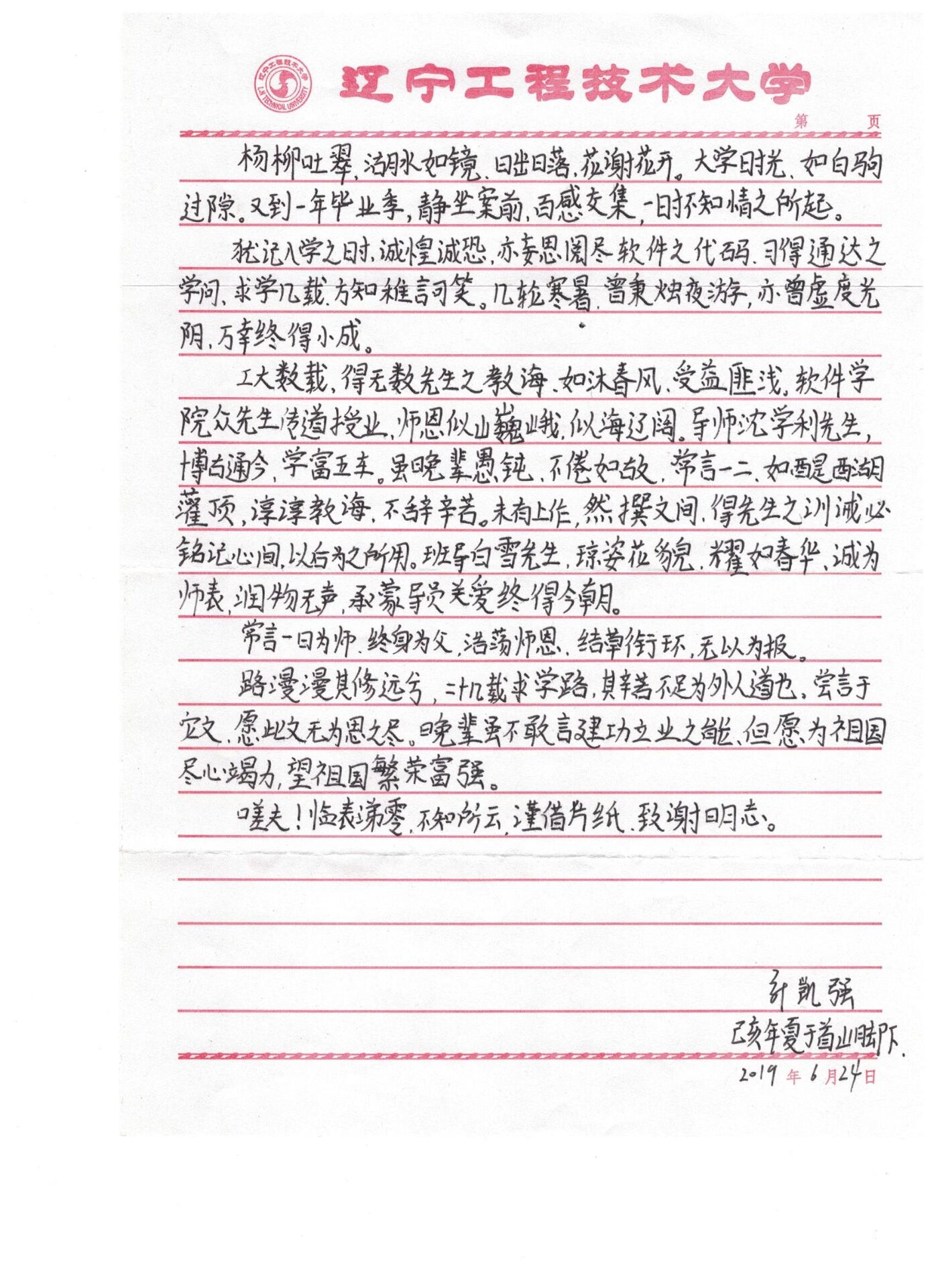 收到了一封来自毕业生郭凯强的感谢信,其言辞恳切,文采斐然,语言功底深厚,令人感动不已。转眼又是一年毕业季,小妲己直播