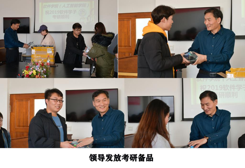 动员会上两位院领导询问了考研学子的思想、生活和备考等方面情况。沈院长代表学院对即将奔赴考场的同学们送上最诚挚的祝福,鼓励他们认真对待考试,沉着冷静,发挥自己最佳的水平。沈院长表示学院是大家最坚强的后盾,学子们的需求,学院会尽最大的能力去满足。随后靳书记再次对所有考研学子送上祝福和鼓励。最后两位领导为学子们发放考研备品,希望他们都能够考上自己心仪的院校,完成自己的梦想,以梦为马,不负韶华。