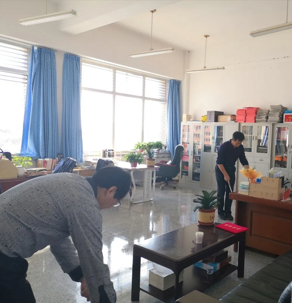教职工于13日上午对办公场所和实验室等所辖区域进行了清洁和消杀工作。