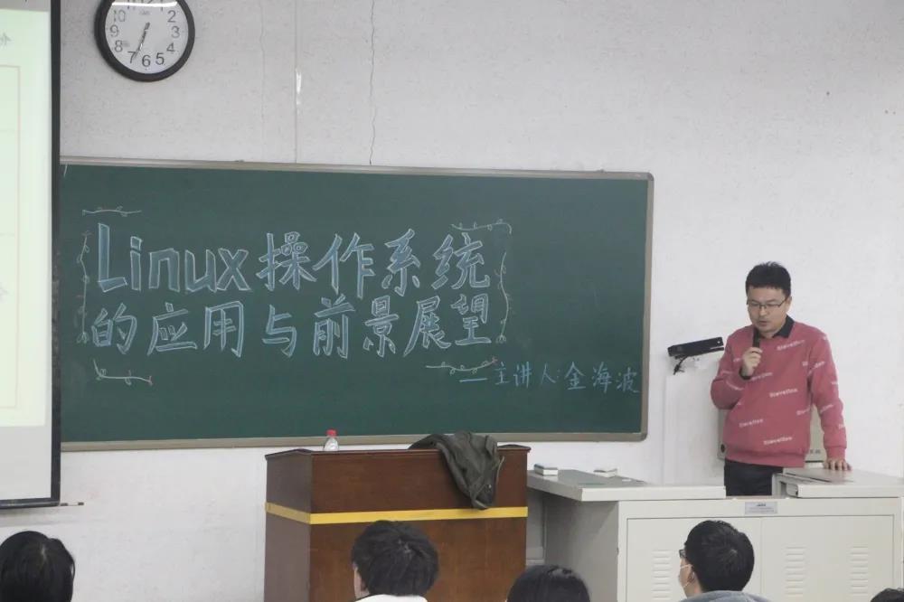 于尔雅楼121教室举办了题为“Linux操作系统的应用与前景展望”的讲座。本次讲座由金海波副教授主讲,学院2020级软件工程专业部分同学参加了本次讲座。