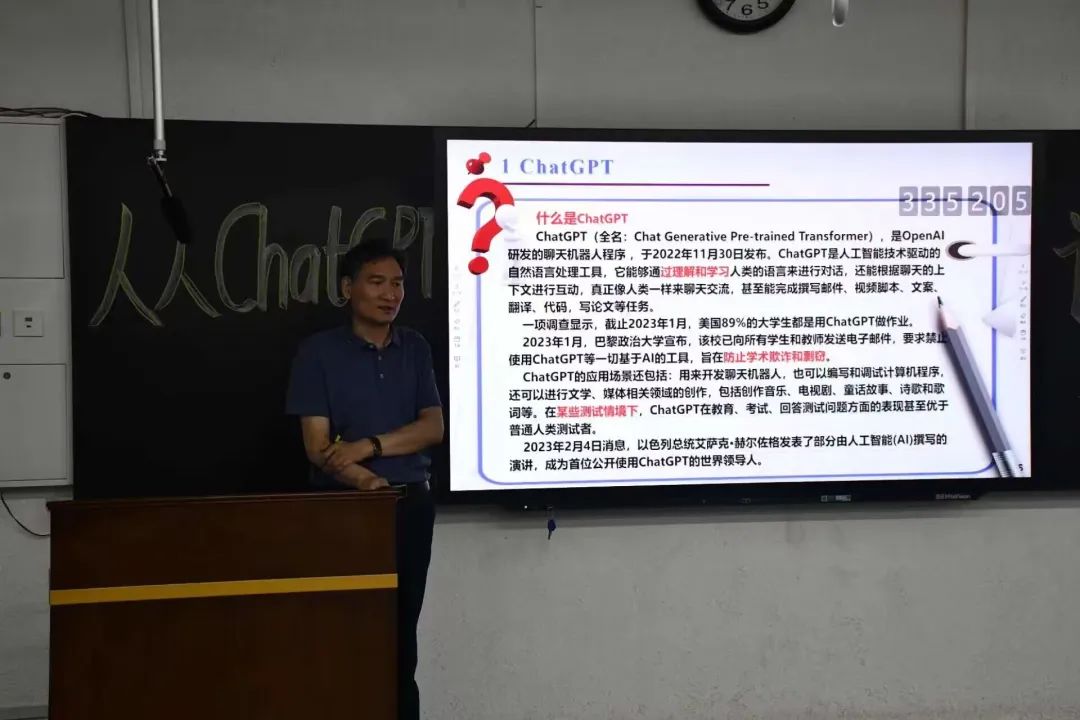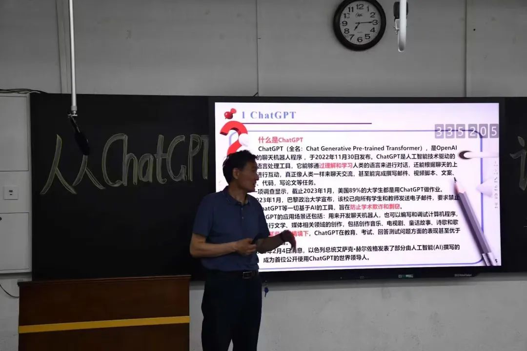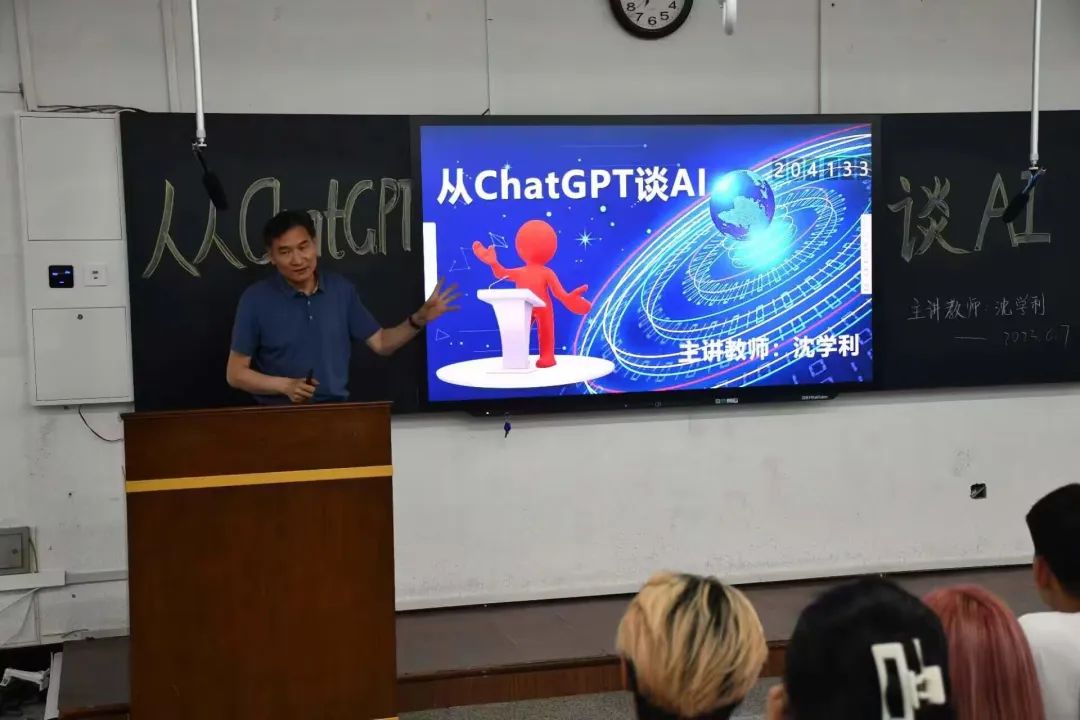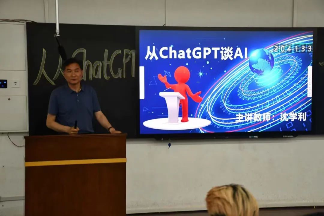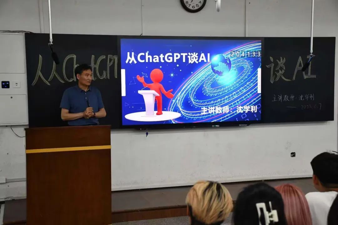 于耘慧楼101室举办了“从ChatGPT谈AI”讲座,本讲由院长沈学利教授主讲,小妲己直播