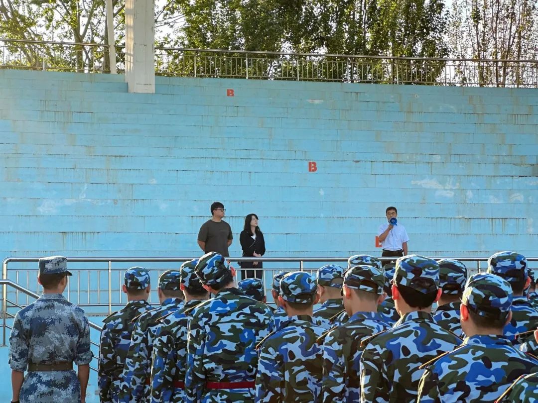 2023年9月2日上午,学院组织2023级全体新生在体育场召开军训动员大会。学院党委副书记靳小川,带训辅导员王菲、赵孟乾老师,全体新生副班导师以及2023级新生参加此次大会。