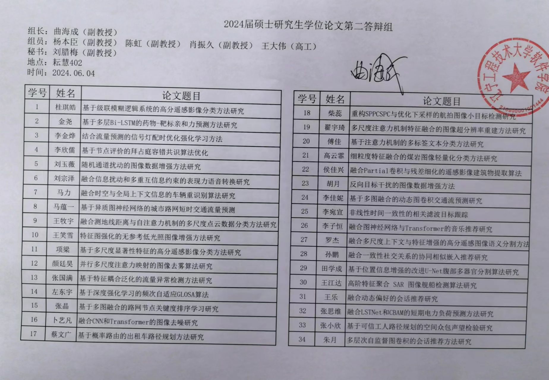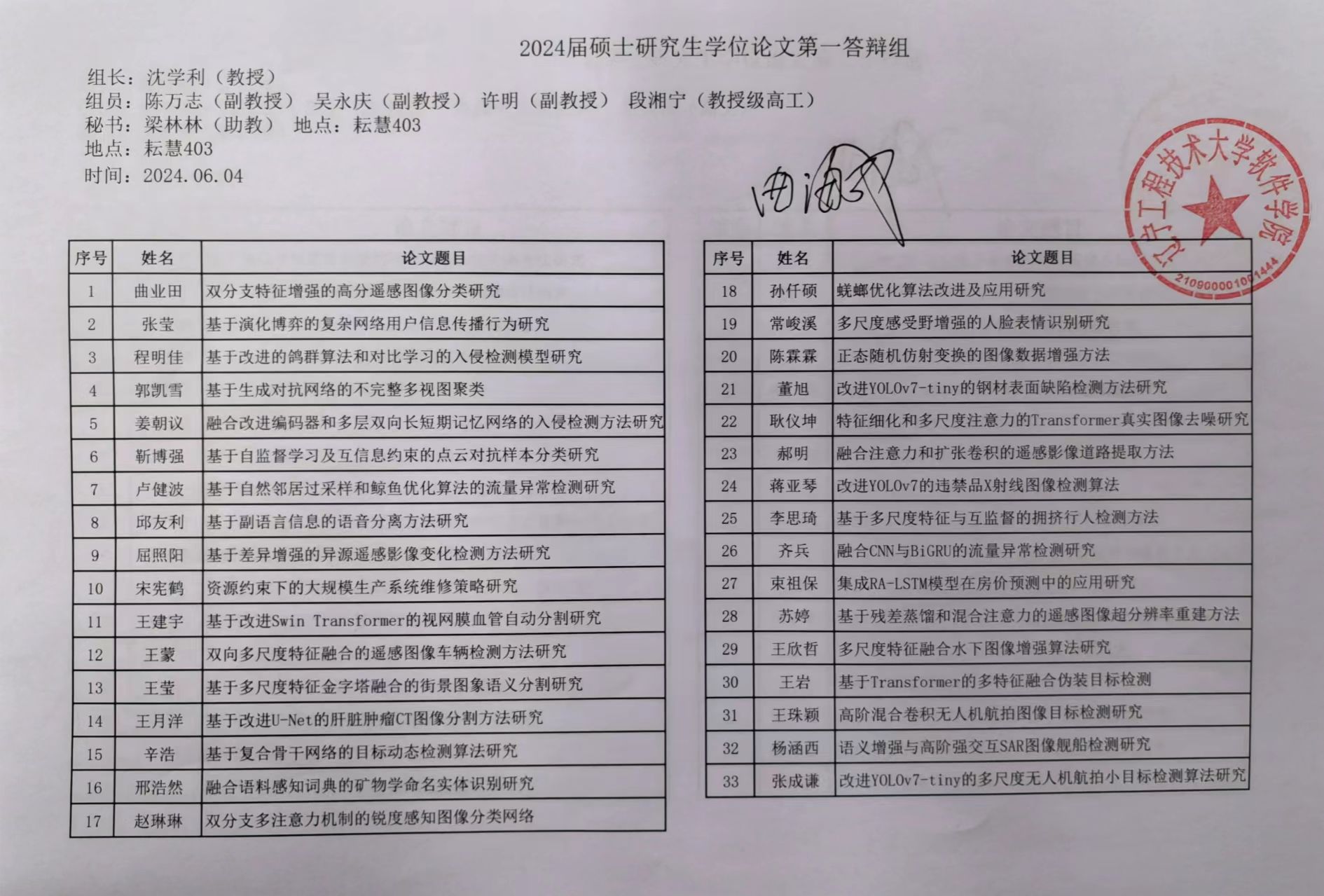 2024届硕士研究生学位论文第一批答辩安排