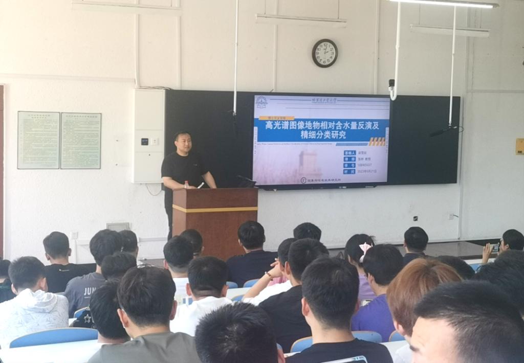 在本次学术交流讲座上,梁雪剑博士分享了他在博士期间的科研论文成果,向同学们介绍了遥感图像处理的背景与现状,针对原有模型存在的特征提取能力不足、适用性低等问题进行了改进研究,提出了自己的创新方法,并详细讲述了空间、光谱统计特征的类间和类内分类,解释了地物空谱统计特征解译需求精细化、定量化方法。梁雪剑博士指出,学术成果来源于长时间的积累与坚持,在研究过程中要提前打好框架,及时确定有条理的逻辑关系,只有这样才能事半功倍。