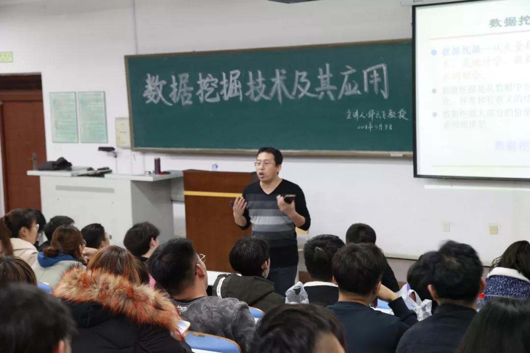 讲座伊始,邱教授首先为同学们介绍了数据挖掘技术的相关知识并为同学们深入讲解了如何运用机器以及软件进行数据挖掘。随后,邱教授以“啤酒与尿布”的故事引出数据挖掘的由来,并为同学们深度讲解了数据挖掘的发展、特征、主要方法及应用。最后,邱教授为同学们介绍了数据挖掘系统及相关内容,并鼓励同学们多多学习相关知识,为数据挖掘技术的发展出一份力。