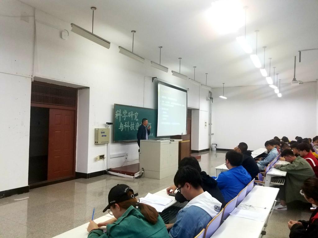 首先刘教授提出什么是科学研究这一问题来说明科学研究的概念。接下来他通过目标跟踪的例子来介绍了科学研究的目的,他根据主题、材料、方法、哲学观点等方面深入浅出地讲解了研究的要素。然后刘教授讲耐心地讲解研究与生产的实践关系和研究的继承性和创造性关系来说明如何看待科学研究,由此,刘教授给我们讲解科技论文的写法,他选题、科研内容的确定、过程、成果和总结以及正文的结构和要求等方面向同学们讲解了科技论文写作的方法。最后刘教授鼓励同学们尝试撰写论文,锻炼大家的动手能力,希望大家成为栋梁之材。