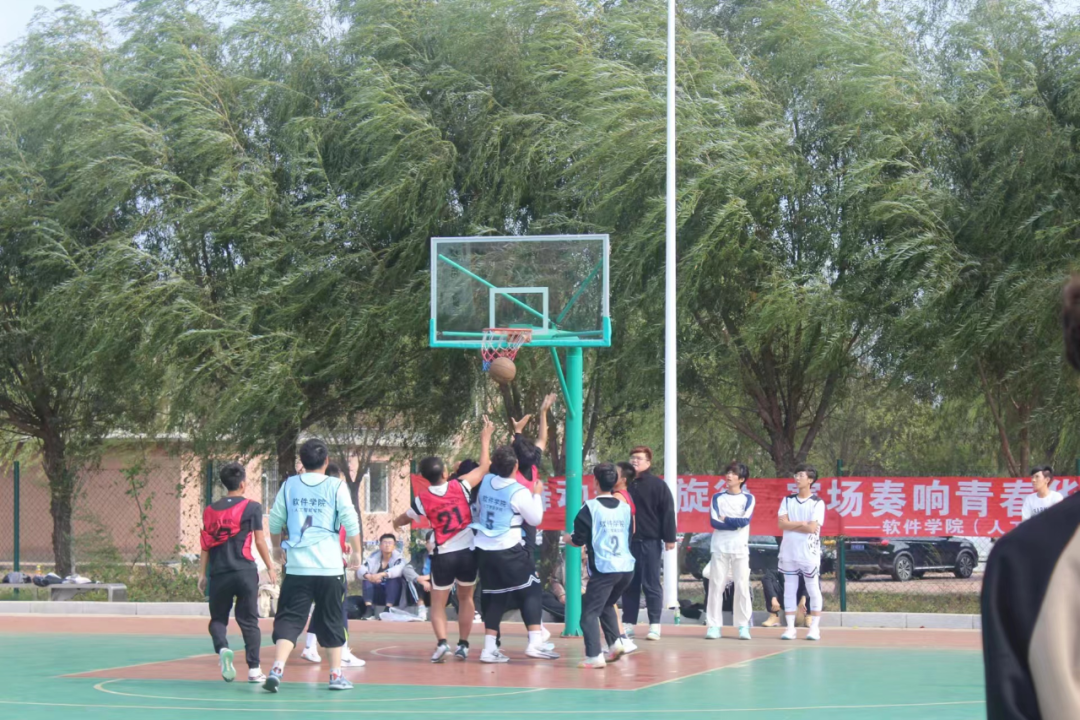 在本次比赛中,由软件24-13、24-14、网络24-3班组成的B1组和网络24-1、网络24-2、智能24-1班组成的B4组展开了激烈的角逐,双方球员均展现出了精湛的篮球技艺与顽强的拼搏精神。球场上,他们奔跑如飞、跳跃如鹰、对抗如狮,汗水浸透了球衣,却浇不灭他们心中对胜利熊熊燃烧的渴望。那份对篮球的热爱与执着,在他们的每一个动作、每一次眼神交流中,都展现得淋漓尽致。
