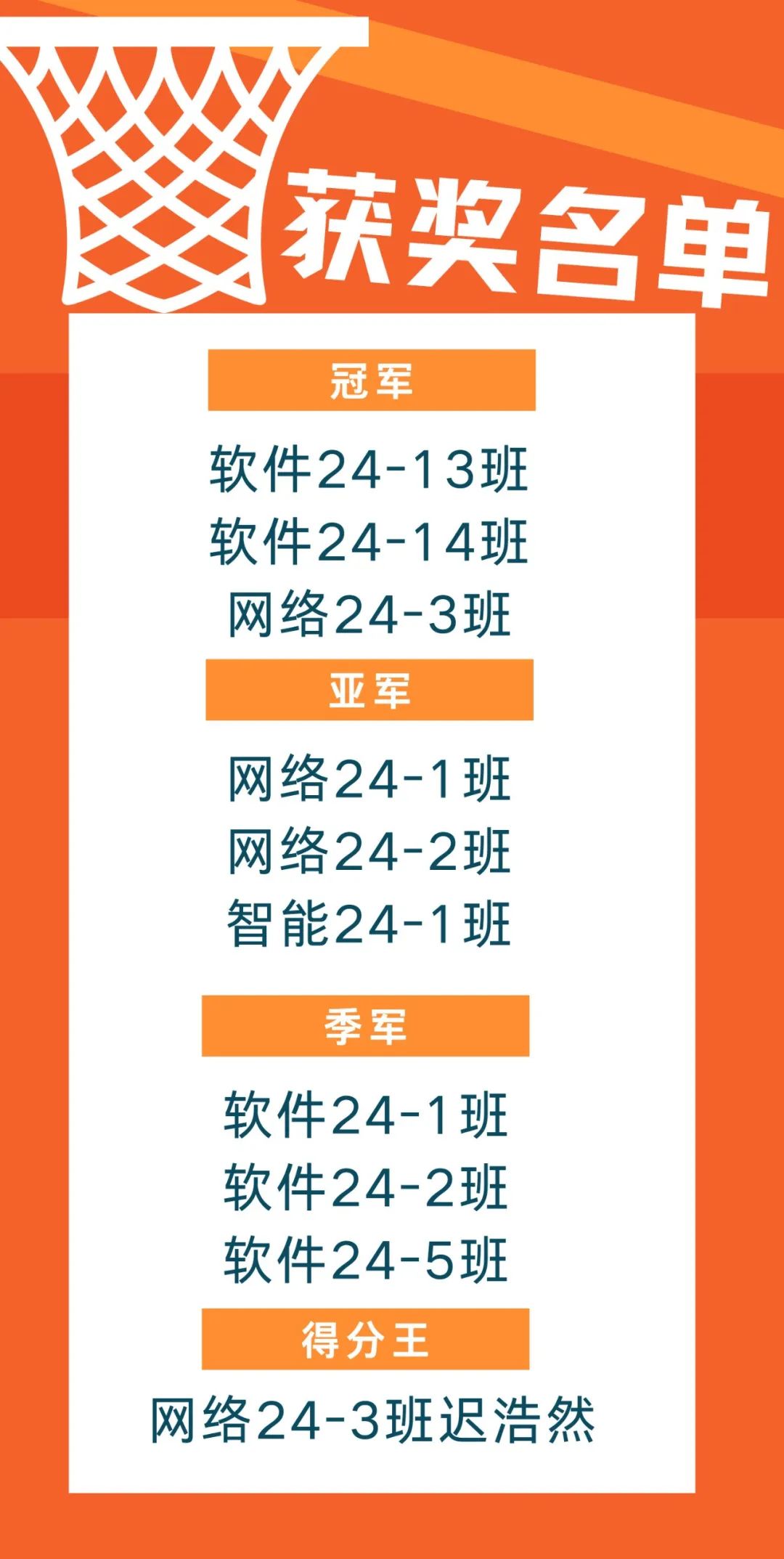 经过两周的角逐,学院2024级新生篮球赛最终获奖情况如下: