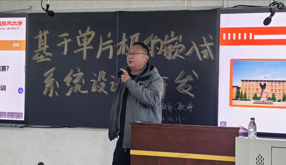 讲座伊始,耿涛老师以软件工程专业理论知识为切入点,着重解析了嵌入式开发的关键要点,全面阐述了硬件选择、软件编程、系统集成及测试的复杂流程。接着,耿老师分享了一系列研究方法,如依据处理能力、内存大小、输入输出等要求挑选最为合适的硬件,运用软件工程所学知识编写程序代码,以及选择恰当的开发环境和编程语言以实现系统功能。