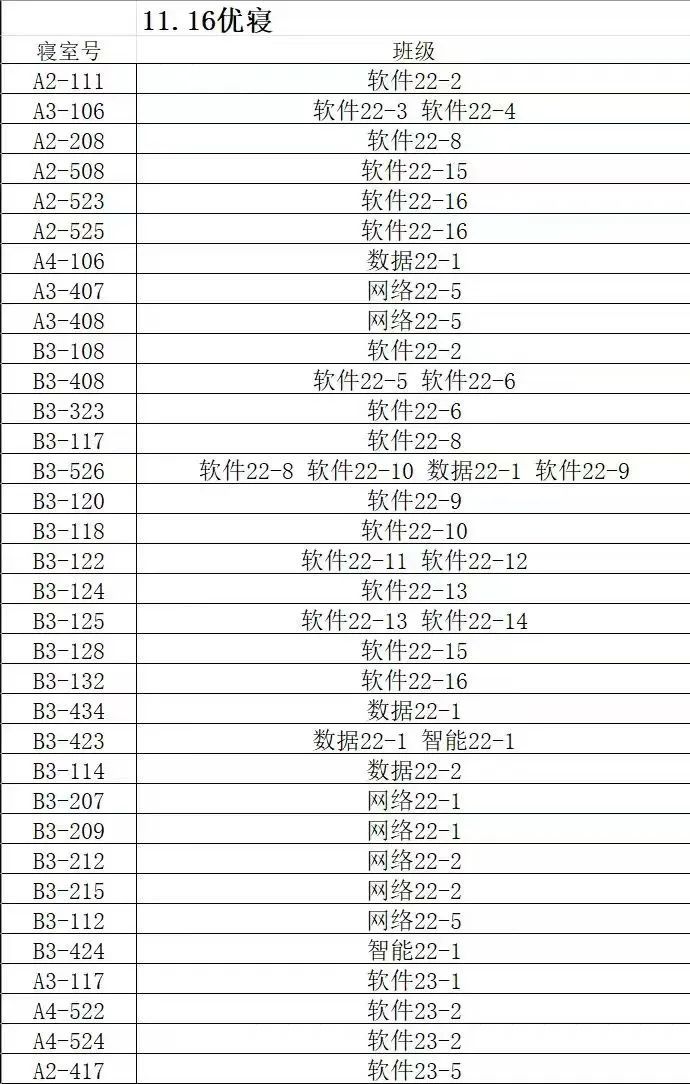 本次查寝中,我们发现整体情况良好。其中,差寝率在 65 分及以下的仅占 7.31%。优秀率(95 分)达到了 9.57%。这些优秀的宿舍为大家树立了良好的榜样,他们的整洁、有序以及对宿舍安全的重视,值得每一位同学学习。