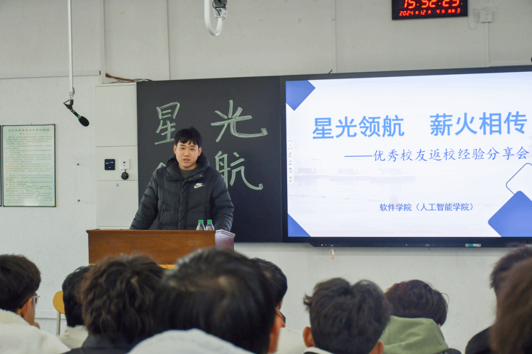 在耘慧楼101教室隆重召开了“星光领航,薪火相传”优秀校友返校经验分享会。本次分享会特邀学院原学生会主席团成员、现就职于国家电网的19级优秀毕业生窦睿涛学长,为在校学弟学妹们分享宝贵经验与成长感悟。
