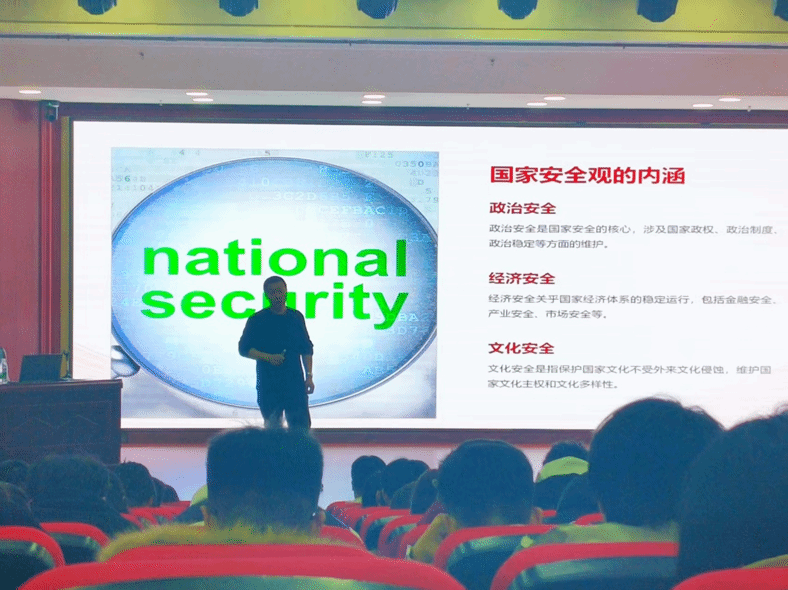 紧接着,寇老师对总体国家安全观进行了讲解。国家安全涉及国家的方方面面,从政权稳定、主权完整,到经济发展、人民福祉,每一个环节都至关重要。其中,政治安全是核心,经济安全关乎国家经济体系稳定,文化安全则保障国家文化的独特性和多样性。在这些方面,高校要做好表率,发挥培英育才的作用。